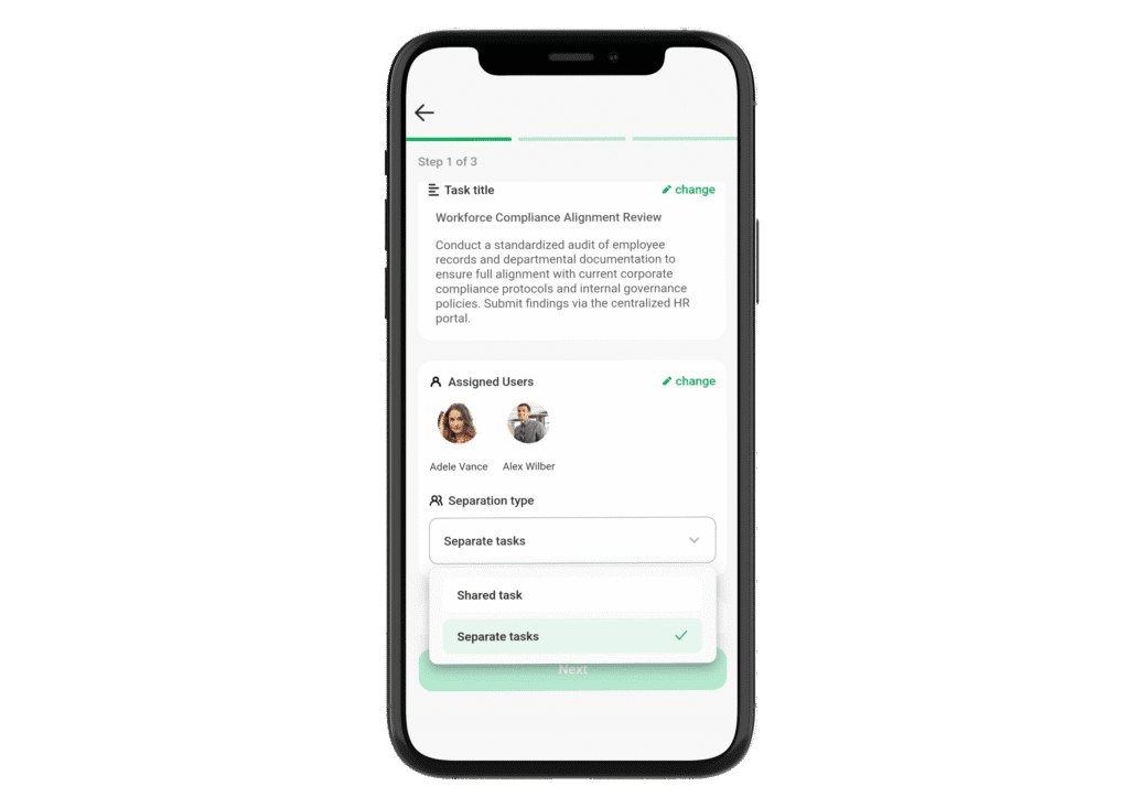 This improves team coordination and accountability, especially for mobile-first or deskless employees. It allows leaders to quickly adapt task assignment based on the nature of the work and the team’s preferred way of collaborating, all while keeping everything streamlined within the mobile experience.