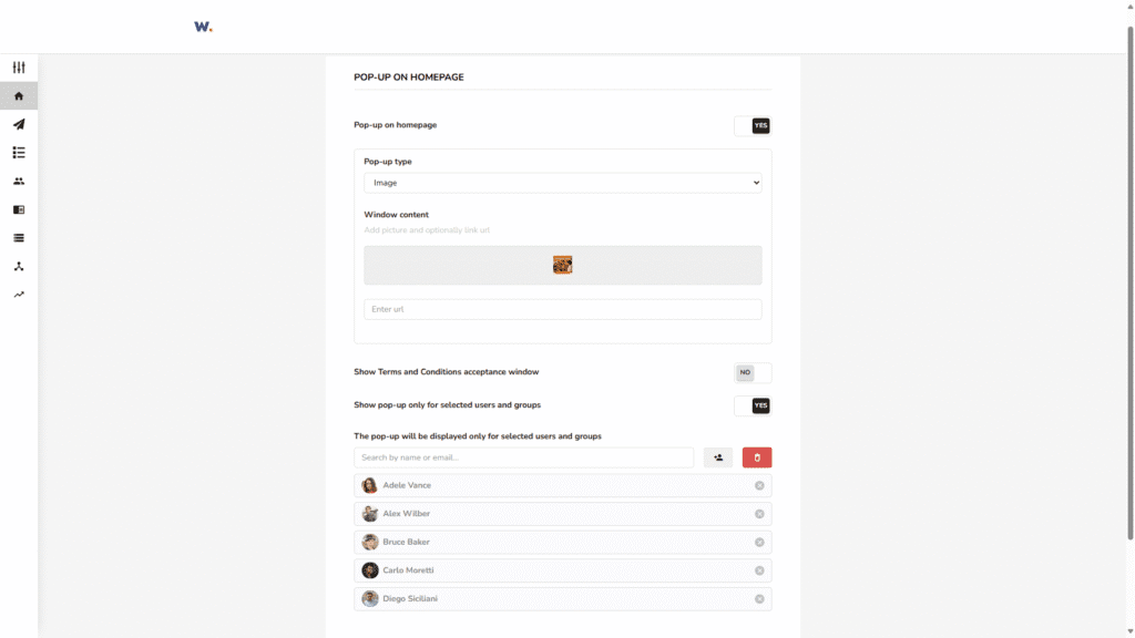 Description: We’ve introduced personalized pop-up windows on the homepage, giving administrators full control over who sees each message. This means that instead of broadcasting every announcement to everyone, admins can now target specific audiences, ensuring communication stays relevant and non-intrusive.